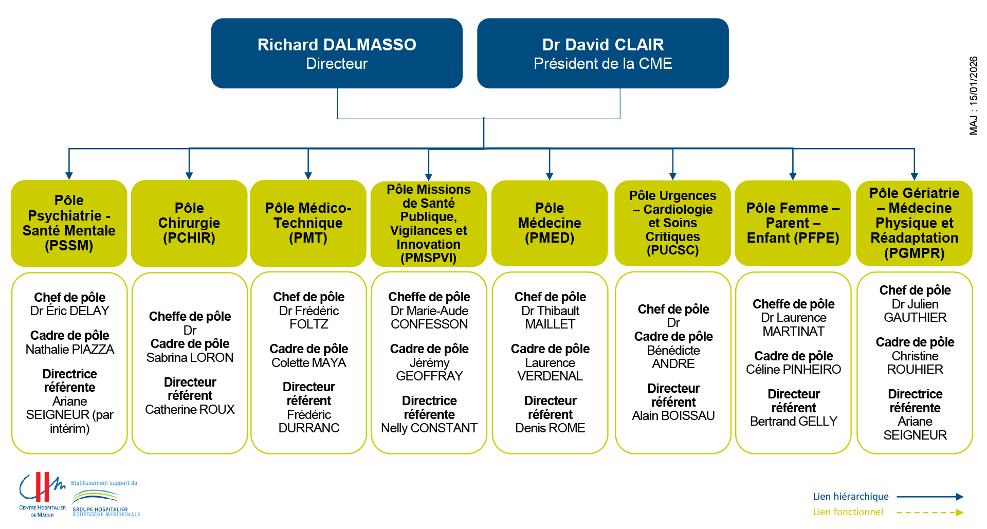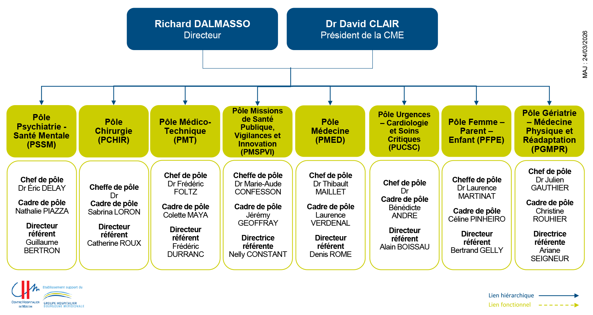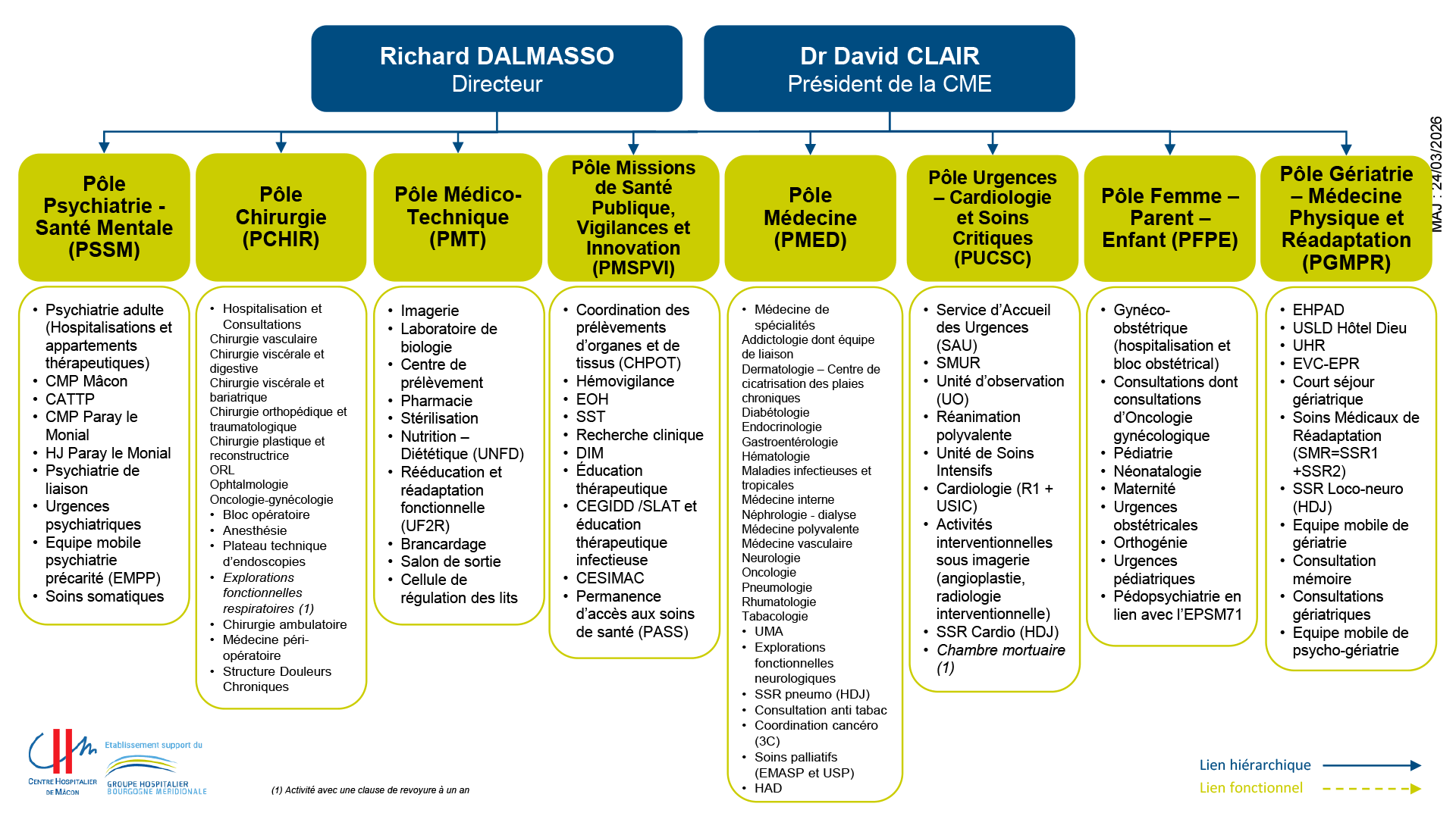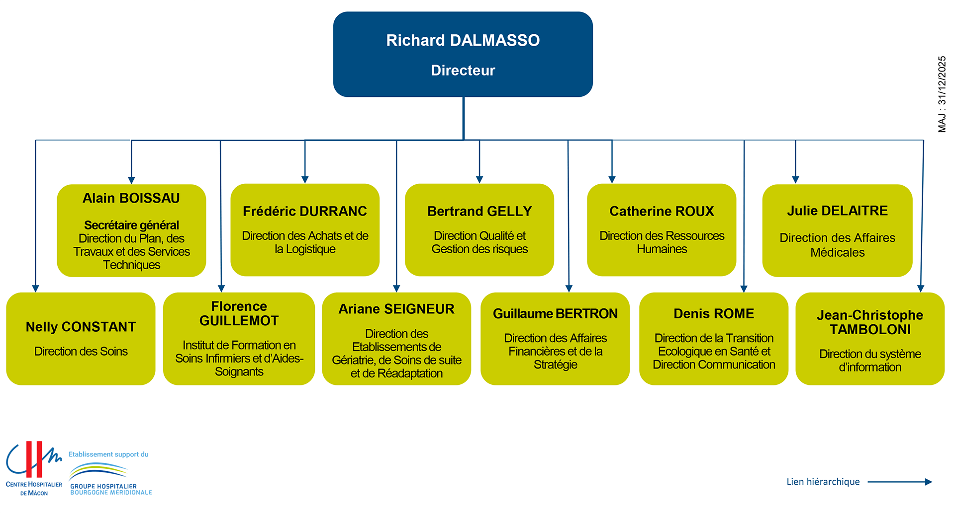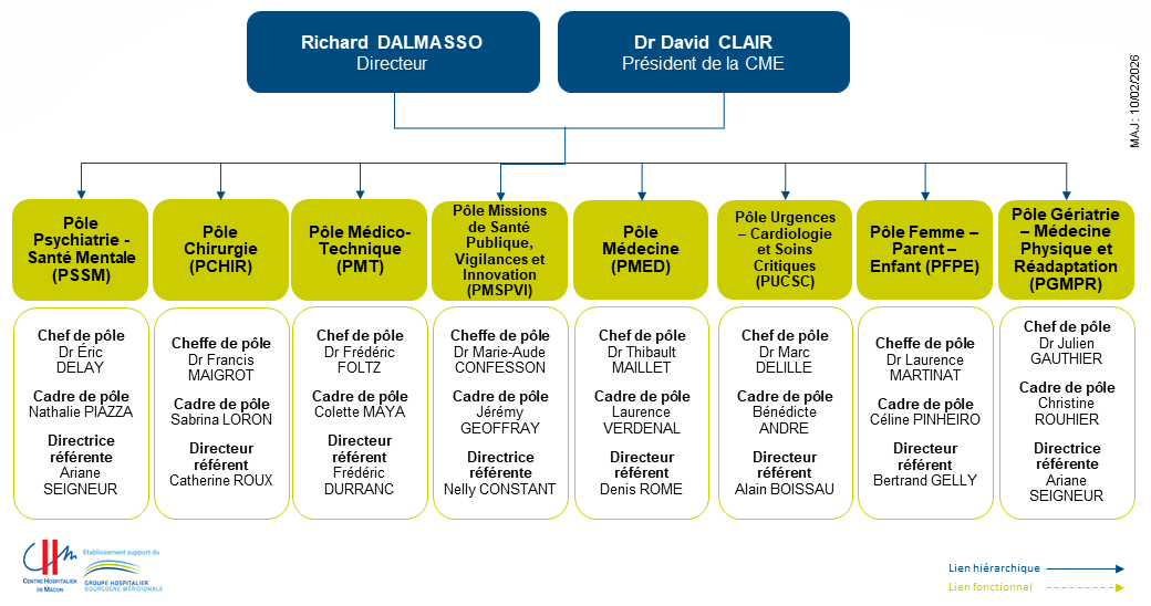 Accueil › Le CHM › Organisation et Instances Organisation et Instances Organigramme de la direction Organigramme des pôles Les Instances Le CHMDécouvrir l’hôpital Présentation Chiffres clés Plusieurs sites L’hôpital s’engage CHU de Dijon La laïcité à l’hôpital Organisation et Instances Directions fonctionnelles Publications légales Satisfaction